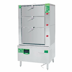 2.蒸製食品:開門放入食品蒸製前,應關閉電源或蒸氣閥門,緩緩打開門鎖,讓蒸櫃內的高溫蒸氣泄壓,以防蒸氣灼傷。泄壓後便可打開櫃門放入要蒸製的食品,關閉門把手,方可送電,讓蒸櫃加熱工作。