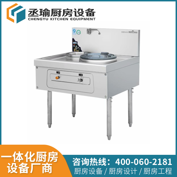 商用廚房設備簡易式單頭單尾燃氣炒灶設置風機開關, 操控靈活方便;溝風爐頭,火力集中穩定;供氣與供風聯動控製, 操作方便, 適合現代烹飪的專業要求。整體成形爐麵保證台麵不會發生滲漏, 並且台麵與內衫鐵板固定牢固, 不會發生台麵起鼓現象;每個爐頭獨立配置風機, 供風穩定, 既節約電能又方便檢修;重力可調節腳設計,使得爐灶結構更穩固,適應不同地麵高度。電子脈衝點火,無需人工點火,灶台與爐膛之間采用隔熱材料,不用給灶台降溫,節約用水量;配備不鏽鋼專用搖擺水龍頭及不鏽鋼水盆。